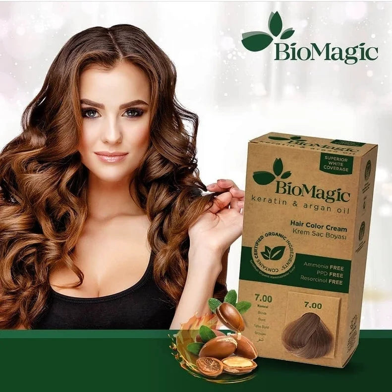 Ontdek onze BioMagic Haarverf Crème, een permanente haarkleuring met natuurlijke en biologische ingrediënten, verrijkt met Keratine en Arganolie en is ook nog 100% grijsdekkend.